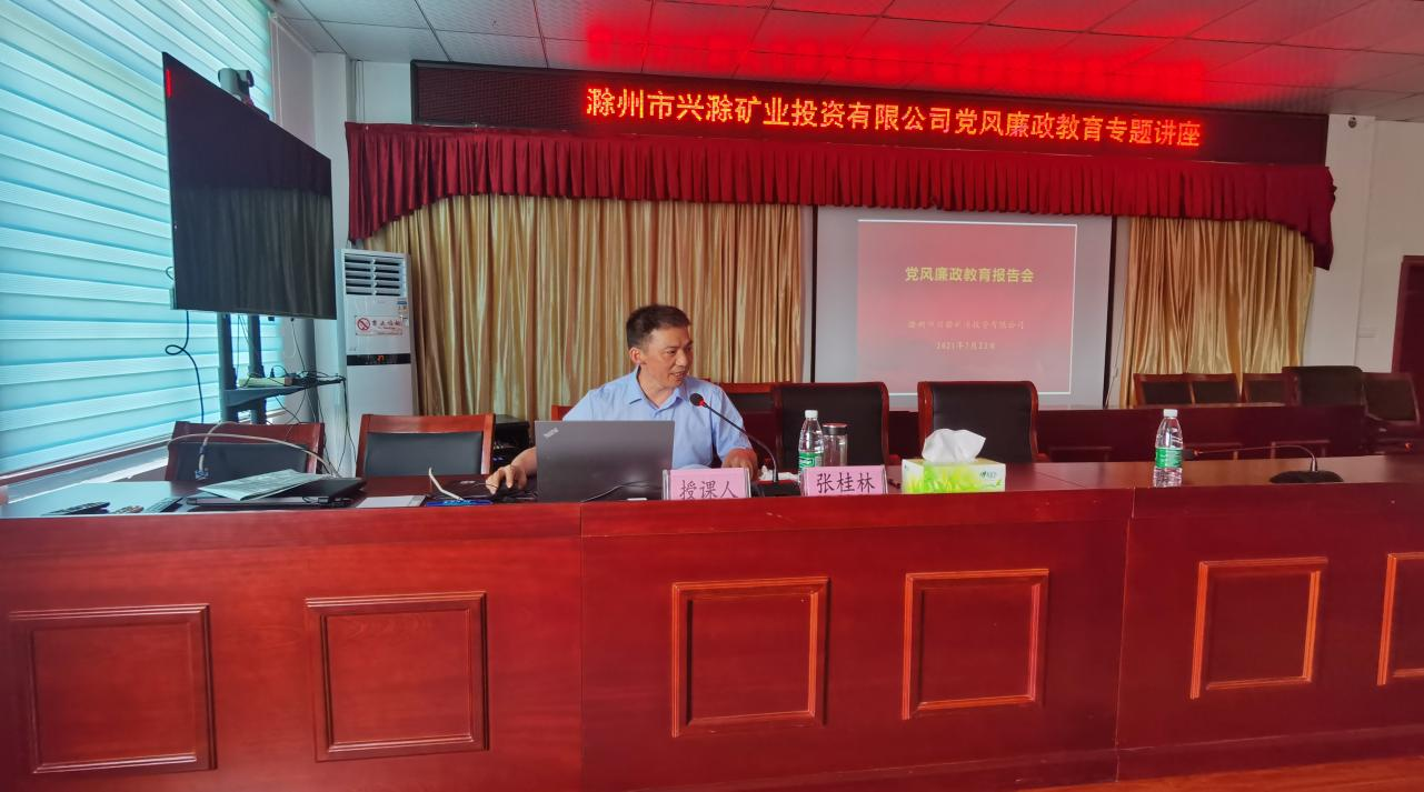 為進(jìn)一步推深做實黨史學(xué)習(xí)教育,切實加強(qiáng)公司黨風(fēng)廉政建設(shè)和反腐敗工作,促進(jìn)黨風(fēng)廉政教育在基層一線落地生根,7月23日,市礦投公司邀請市紀(jì)委監(jiān)委駐市財政局紀(jì)檢監(jiān)察組副組長張桂林赴興明礦業(yè)調(diào)研指導(dǎo)并作黨風(fēng)廉政教育專題講座。公司經(jīng)營層及相關(guān)工作人員約30余人聆聽了講座。