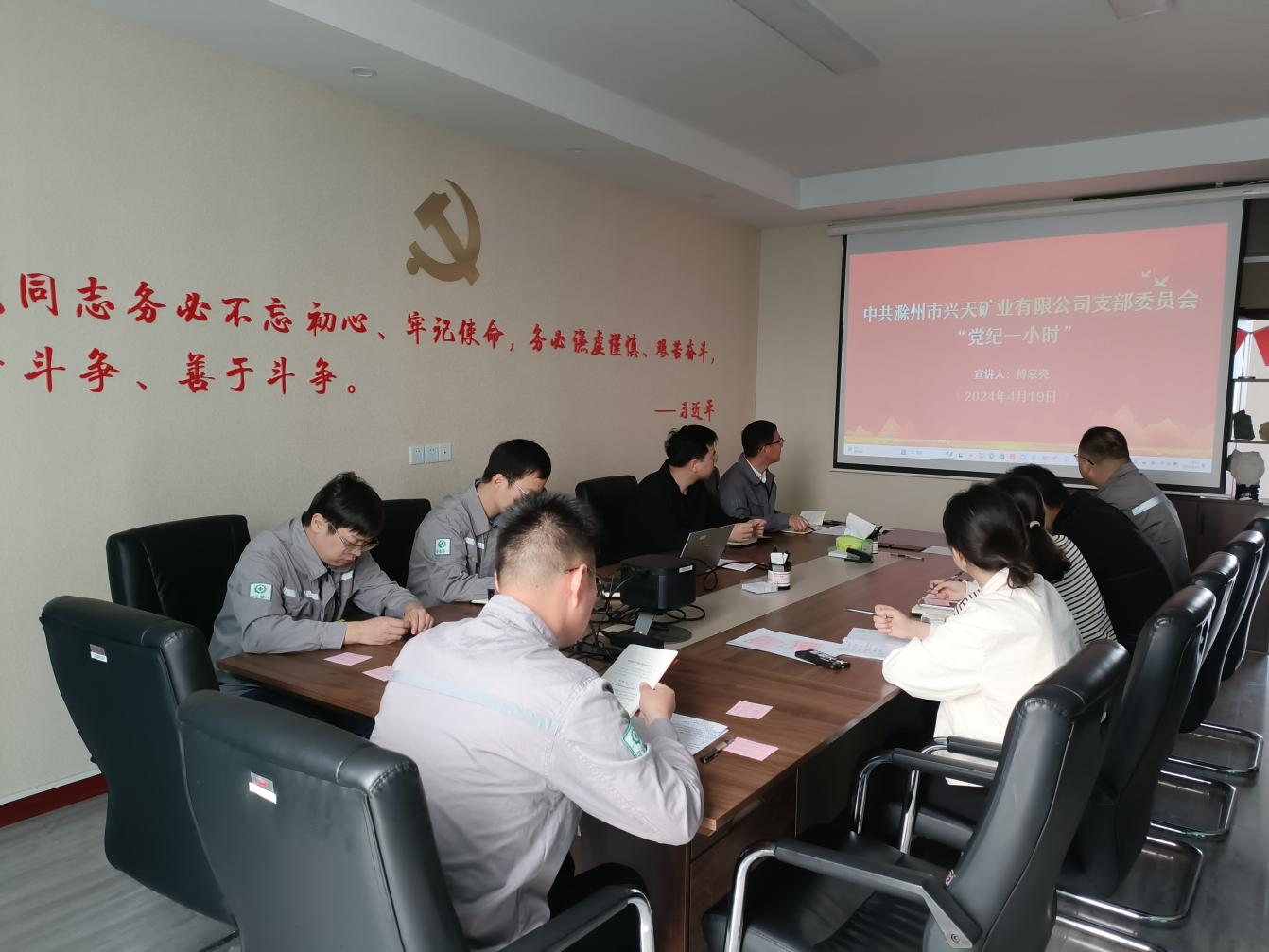 為扎實開展黨紀學(xué)習(xí)教育工作,4月19日,興天礦業(yè)黨支部組織召開“黨紀一小時”活動,支部紀檢委員傅家亮同志為參會人員深入解讀新修訂的《中國共產(chǎn)黨紀律處分條例》。