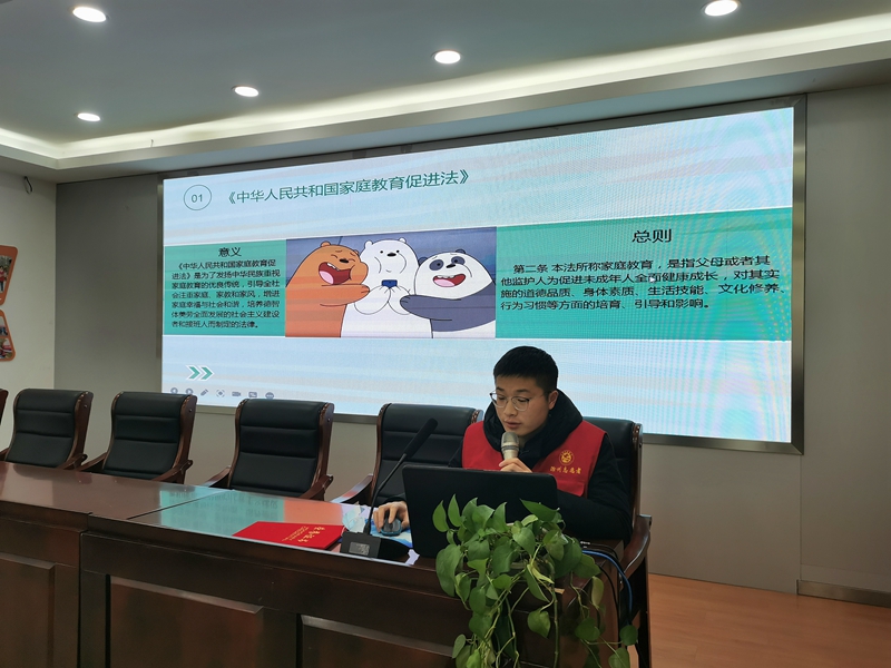 守護(hù)童年 相伴成長(zhǎng)。舉辦《法律知識(shí)小課堂》普法講座,向社區(qū)未成年人宣講《中華人民共和國(guó)未成年人保護(hù)法》《中華人民共和國(guó)家庭教育促進(jìn)法》,引導(dǎo)他們從小樹立法治觀念,增強(qiáng)法律意識(shí),更好地成長(zhǎng)成才。